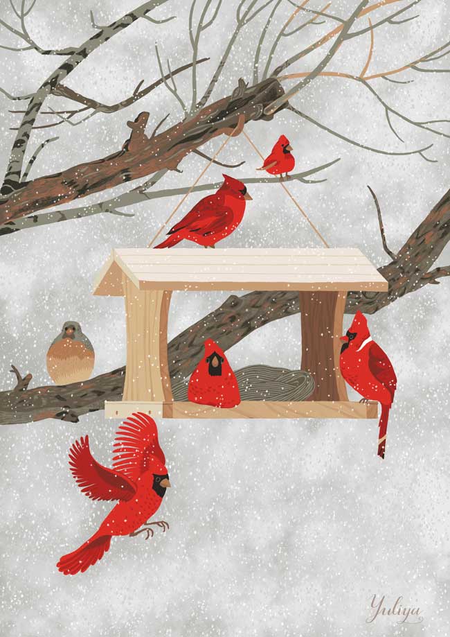 Cardinals at bird feeder